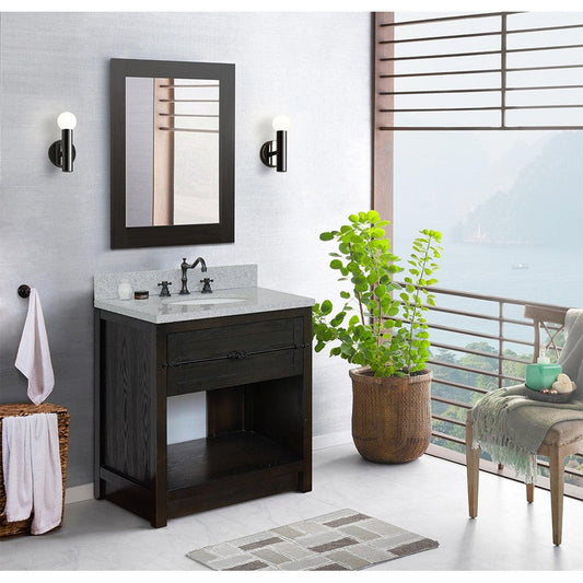 Bellaterra Home Plantation 31" 2-Door Gray Ash Freestanding Vanity Set With Ceramic Undermount Oval Sink and Black Galaxy Top