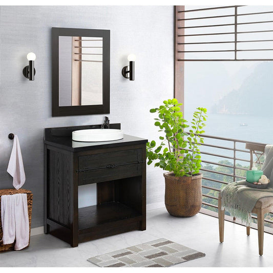 Bellaterra Home Plantation 31" 1-Drawer Brown Ash Freestanding Vanity Set With Ceramic Vessel Sink and Black Galaxy Top