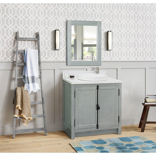 Bellaterra Home Plantation 31" 2-Door Gray Ash Freestanding Vanity Set With Ceramic Vessel Sink and White Quartz Top