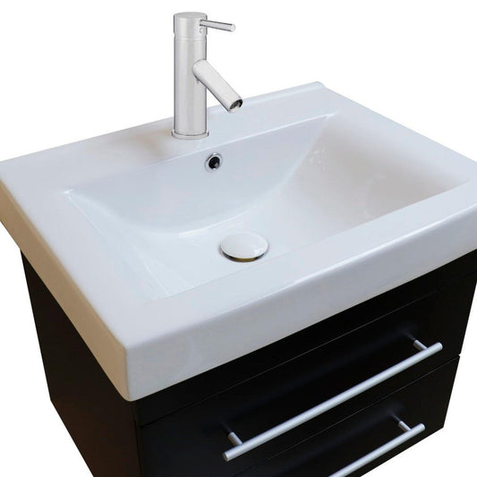 Bellaterra Home 24" 2-Drawer Black Wall-Mount Vanity Set With White Ceramic Integrated Sink and White Ceramic Top