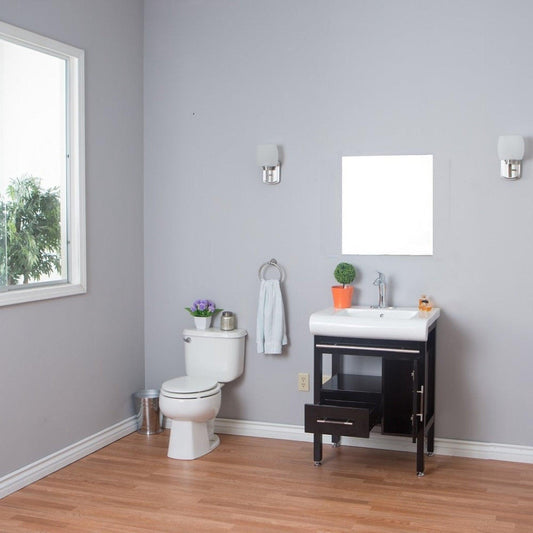 Bellaterra Home 28" 1-Door 1-Drawer Dark Espresso Freestanding Vanity Set With White Ceramic Integrated Sink and White Ceramic Top