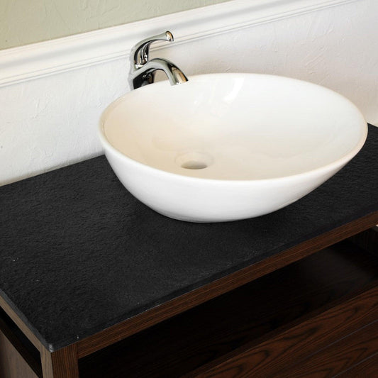Bellaterra Home 36" 1-Drawer Dark Wallnut Freestanding Vanity Set With Vitreous China Vessel Sink and Burnt Stone Top