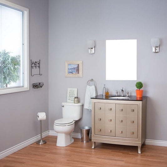 Bellaterra Home 36" 2-Door Bronze Silver Freestanding Vanity Set With White Ceramic Undermount Sink and Black Galaxy Granite Top