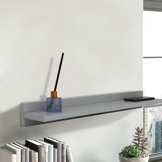 Bellaterra Home 35" Light Gray Rectangle Wall-Mounted Solid Rubber Wood Wall Shelf With 15W/3A Wireless Charging