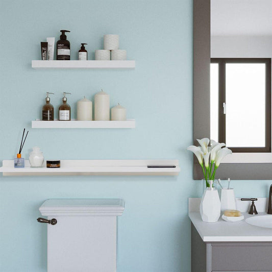 Bellaterra Home 35" White Rectangle Wall-Mounted Solid Rubber Wood Wall Shelf With 15W/3A Wireless Charging
