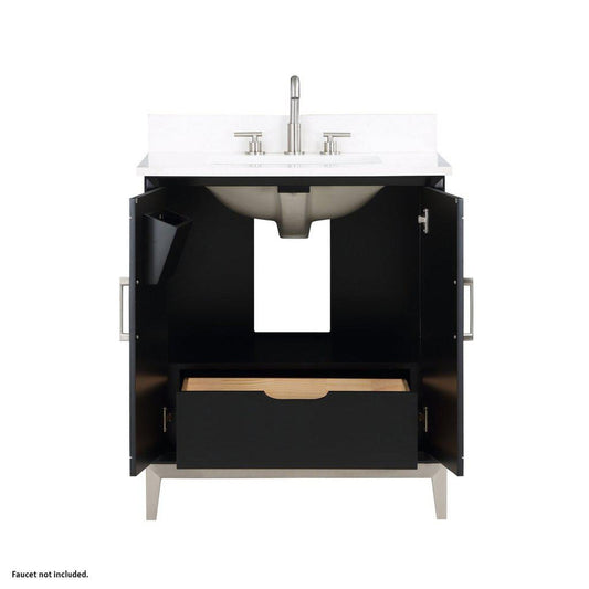 Bemma Design Gracie 30" Midnight Black Solid Wood Freestanding Bathroom Vanity With Single 3-Hole White Quartz Vanity Top, Rectangle Undermount Sink, Backsplash and Brushed Nickel Trim