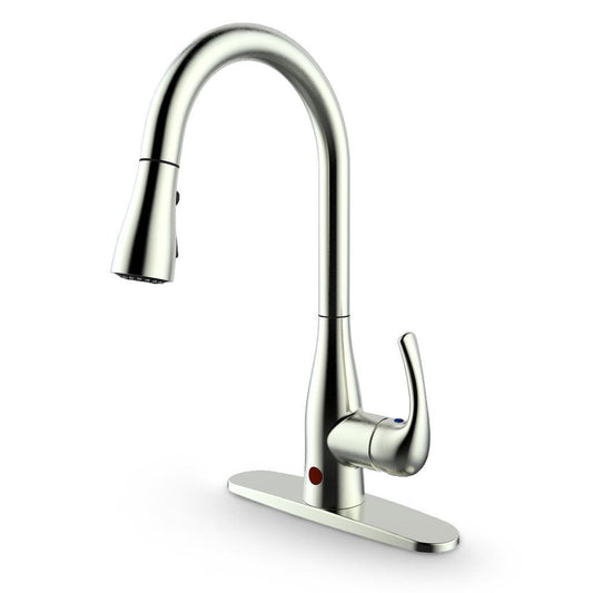 Bio Bidet Flow Motion Activated 17" Brushed Nickel Single Hole High Arc Smart Latch Kitchen Faucet With Dual Sensor and Dual Spray Function