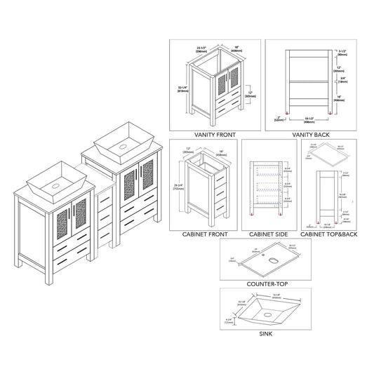 Blossom Sydney 60" Espresso Freestanding Vanity Set With Integrated Double Sink Ceramic Top, Mirror and Two Side Cabinet