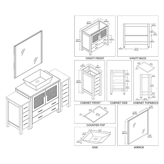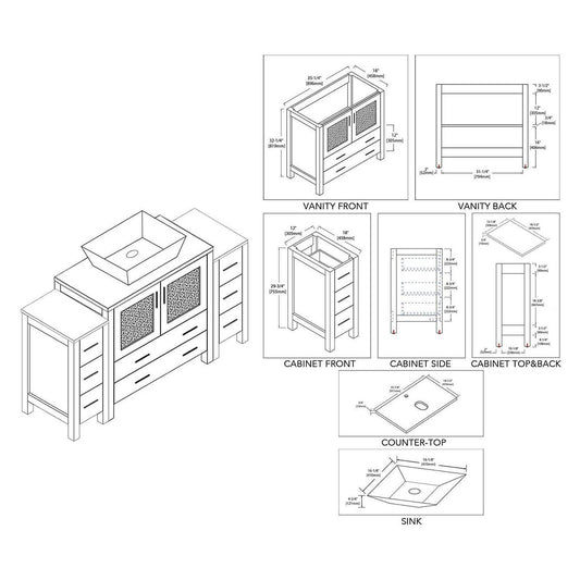 Blossom Sydney 60" White Freestanding Vanity Set With Ceramic Vessel Single Sink, Mirror and Side Cabinet