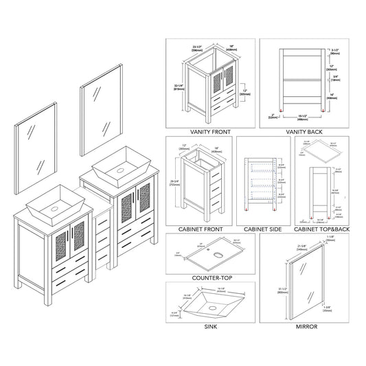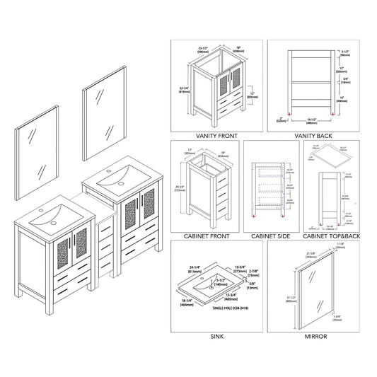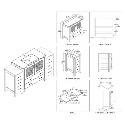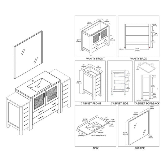 Blossom Sydney 60" White Freestanding Vanity Set With Integrated Double Sink Ceramic Top, Mirror and Two Side Cabinet