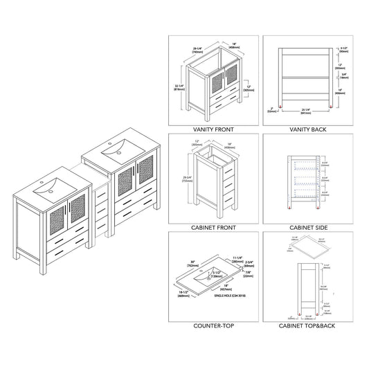 Blossom Sydney 60" White Freestanding Vanity Set With Integrated Double Sink Ceramic Top and Two Side Cabinet