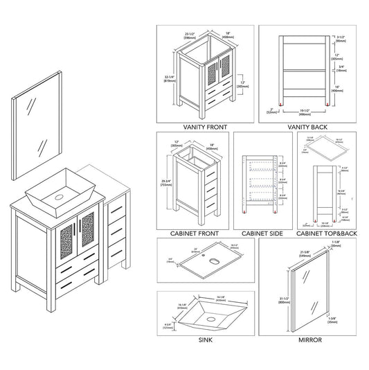 Blossom Sydney 36" White Freestanding Vanity Set With Ceramic Vessel Single Sink, Mirror and Side Cabinet