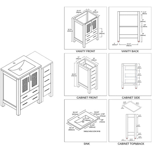 Blossom Sydney 36" Espresso Freestanding Vanity Set With Integrated Single Sink Ceramic Top, Mirror and Side Cabinet