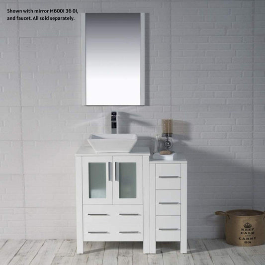 Blossom Sydney 36" White Freestanding Vanity Set With Ceramic Vessel Single Sink and Side Cabinet