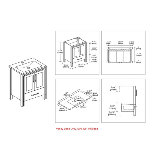 Blossom Birmingham 30" 2-Door 1-Drawer Glossy White Freestanding Vanity Base