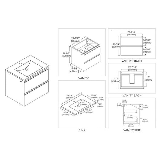 Blossom Jena 24" 2-Drawer Calacatta White Wall-Mounted Vanity Set With Ceramic Top and Integrated Single Sink