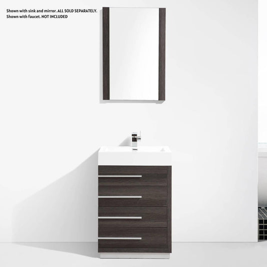 Blossom Barcelona 24" 4-Drawer Dark Oak Freestanding Vanity With Mirror, Acrylic Vanity Top With Integrated Single Sink And Overflow
