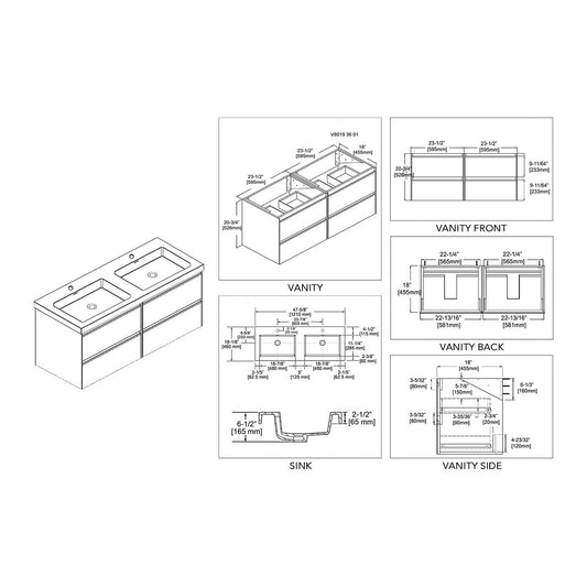 Blossom Berlin 48" 4-Drawer Glossy White & Glossy Grey Wall-Mounted Vanity Base