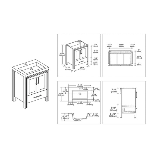 Blossom Birmingham 30" 2-Door 1-Drawer Glossy White Freestanding Vanity Set With Acrylic Top And Integrated Sink