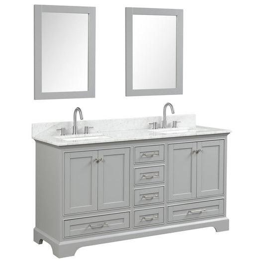 Blossom Copenhagen 60" 4-Door 6-Drawer Metal Gray Freestanding Solid Wood Double Vanity Base