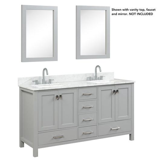 Blossom Geneva 60" 4-Door 6-Drawer Metal Gray Freestanding Solid Wood Double Vanity Base