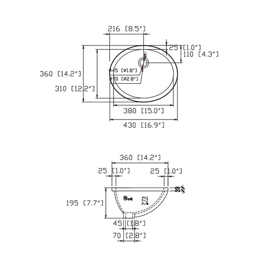 Blossom 17" x 14" White Oval Ceramic Undermount Sink With Overflow
