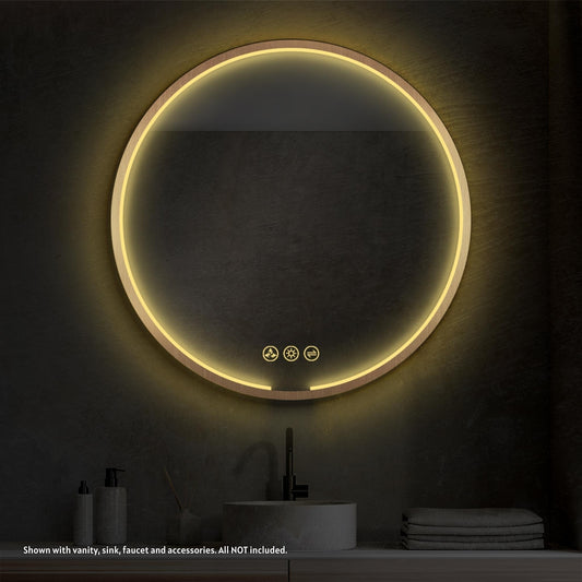 Blossom Oskar 32" Matte Gold Wall-Mounted Framed Round LED Mirror