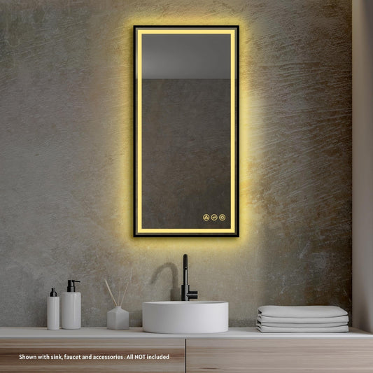 Blossom Binary 20" x 32" Matte Black Wall-Mounted Rectangle LED Mirror