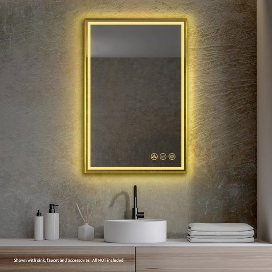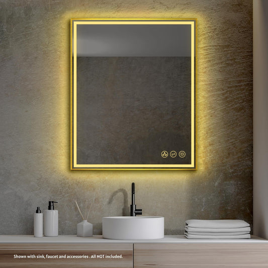 Blossom Stellar 30" x 36" Brushed Gold Wall-Mounted Rectangle LED Mirror