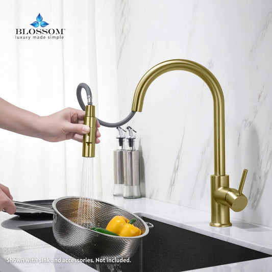 Blossom F01 206 9" x 17" Brushed Gold Single Lever Handle Pull Down Kitchen Faucet