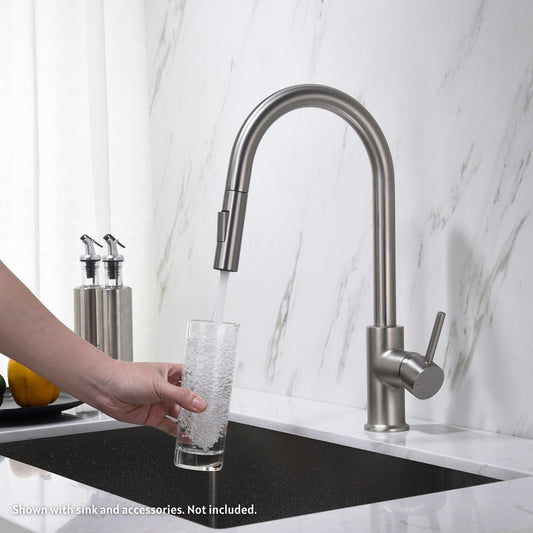 Blossom F01 204 9" x 17" Brushed Nickel Single Lever Handle Pull Down Kitchen Faucet