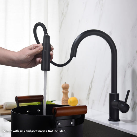 Blossom F01 205 9" x 17" Matte Black Single Lever Handle Pull Down Kitchen Faucet