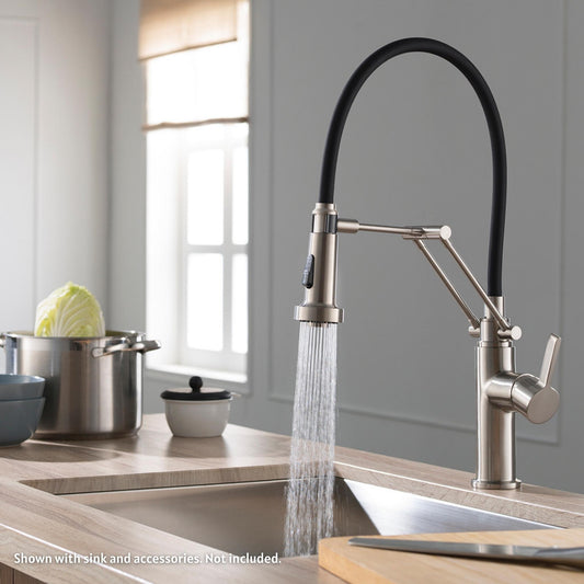 Blossom F01 205 9" x 17" Brushed Nickel Single Lever Handle Pull Down Kitchen Faucet