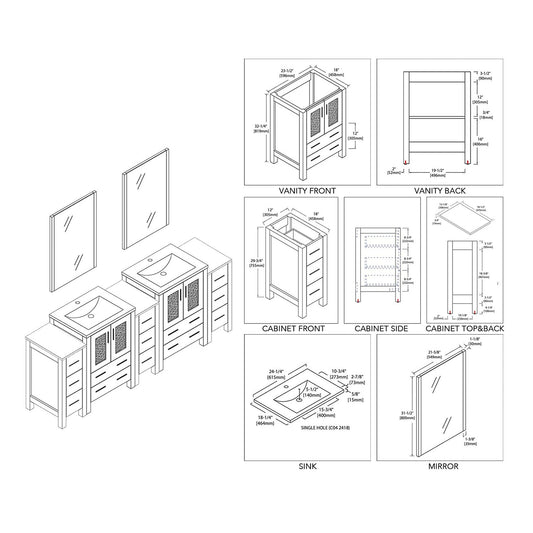 Blossom Sydney 84" White Freestanding Vanity With Ceramic Top, Integrated Double Sinks, Mirror and Three Side Cabinet