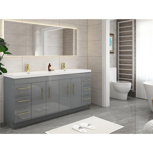 Moreno Bath ELSA 84" High Gloss Gray Freestanding Vanity With Double Reinforced White Acrylic Sinks