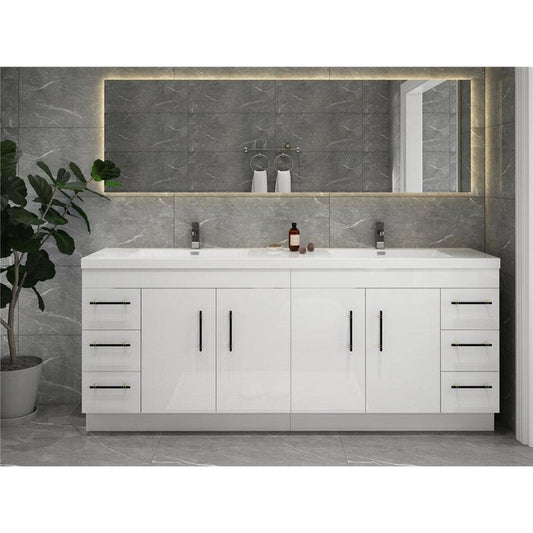 Moreno Bath ELSA 84" High Gloss White Freestanding Vanity With Double Reinforced White Acrylic Sinks