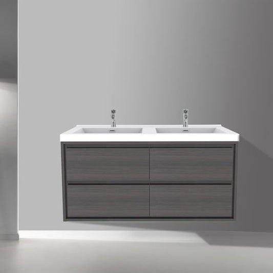Moreno Bath Sage 48" Dark Gray Oak Wall-Mounted Modern Vanity With Double Reinforced White Acrylic Sinks