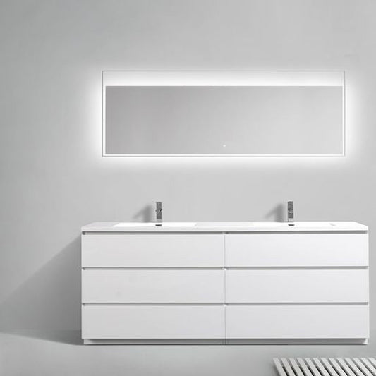 Moreno Bath Angeles 84" High Gloss White Freestanding Vanity With Double Reinforced White Acrylic Sinks