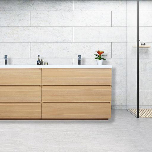 Moreno Bath Angeles 84" White Oak Freestanding Vanity With Double Reinforced White Acrylic Sinks