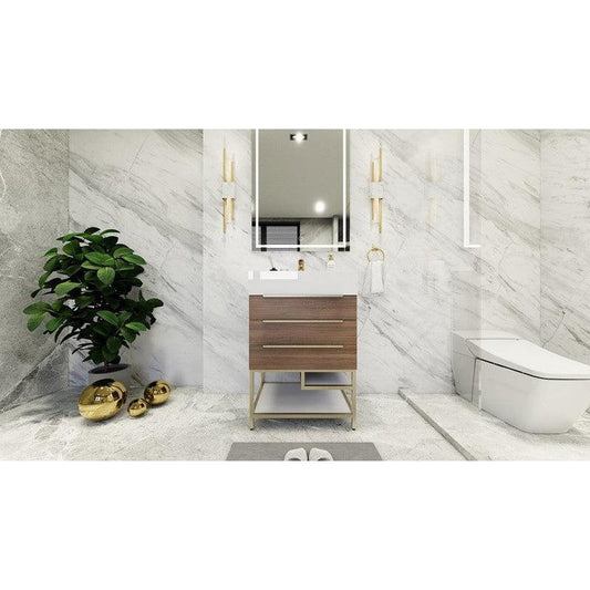 Moreno Bath Bethany 30" Rosewood Freestanding Vanity With Single Reinforced White Acrylic Sink
