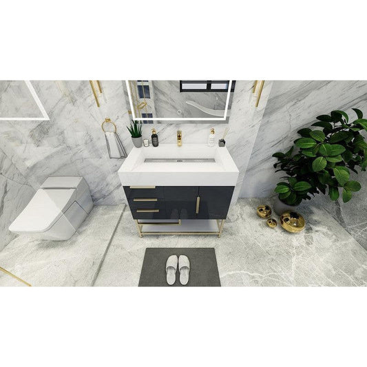 Moreno Bath Bethany 36" High Gloss Gray Freestanding Vanity With Right Side Drawers and Single Reinforced White Acrylic Sink