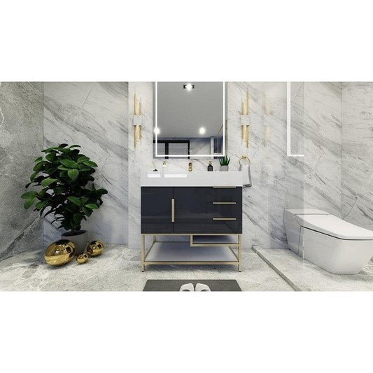 Moreno Bath Bethany 42" High Gloss Gray Freestanding Vanity With Left Side Drawers and Single Reinforced White Acrylic Sink