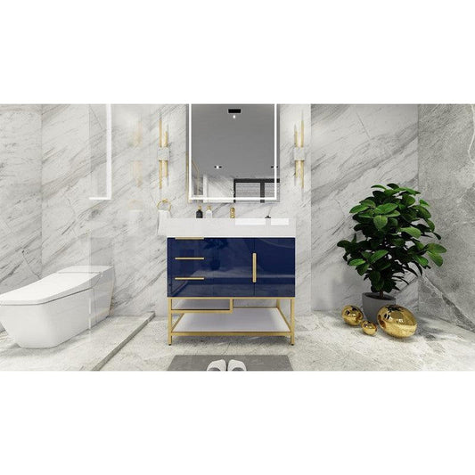 Moreno Bath Bethany 36" High Gloss Night Blue Freestanding Vanity With Right Side Drawers and Single Reinforced White Acrylic Sink