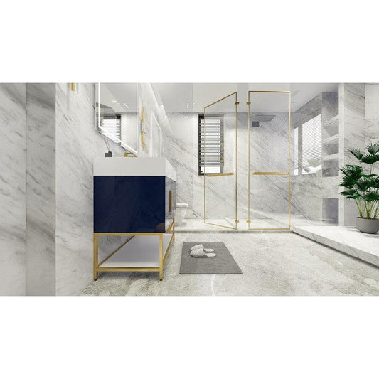 Moreno Bath Bethany 30" High Gloss Night Blue Freestanding Vanity With Single Reinforced White Acrylic Sink