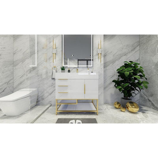 Moreno Bath Bethany 36" High Gloss White Freestanding Vanity With Left Side Drawers and Single Reinforced White Acrylic Sink