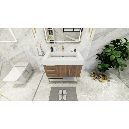 Moreno Bath Bethany 36" White Oak Freestanding Vanity With Right Side Drawers and Single Reinforced White Acrylic Sink