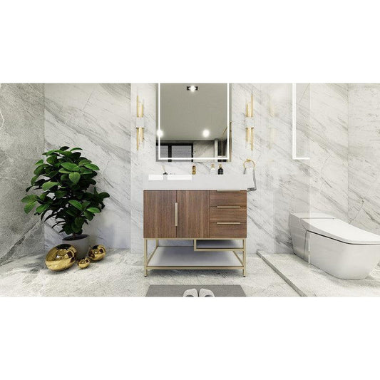 Moreno Bath Bethany 42" Rosewood Freestanding Vanity With Left Side Drawers and Single Reinforced White Acrylic Sink