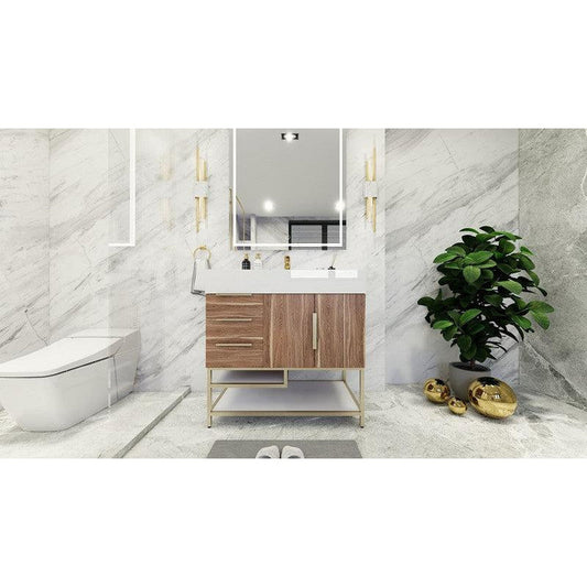 Moreno Bath Bethany 36" Rosewood Freestanding Vanity With Right Side Drawers and Single Reinforced White Acrylic Sink