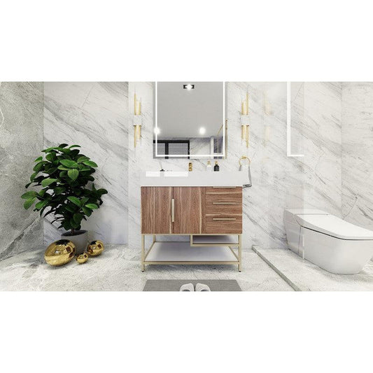 Moreno Bath Bethany 42" White Oak Freestanding Vanity With Left Side Drawers and Single Reinforced White Acrylic Sink