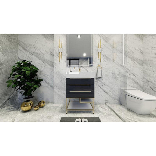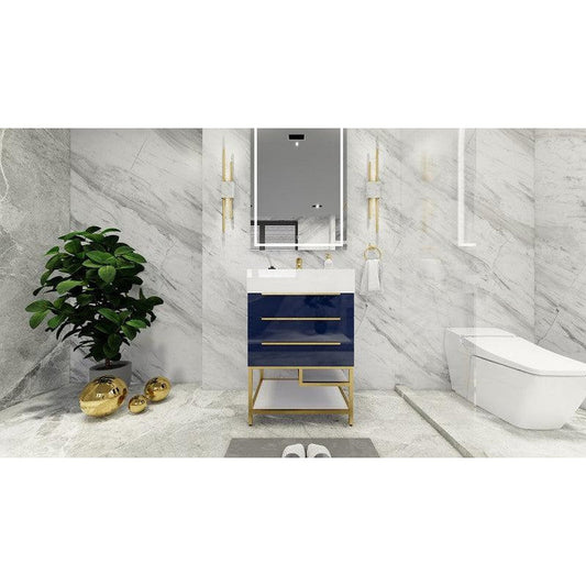 Moreno Bath Bethany 24" High Gloss Night Blue Freestanding Vanity With Single Reinforced White Acrylic Sink